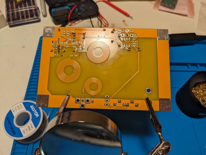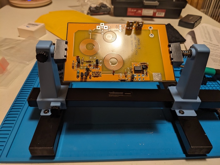 Later, I bought a circuit board clamping kit. I like this better because I could flip the board back and forth while building. It was also more stable than the alligator “extra hands” device.