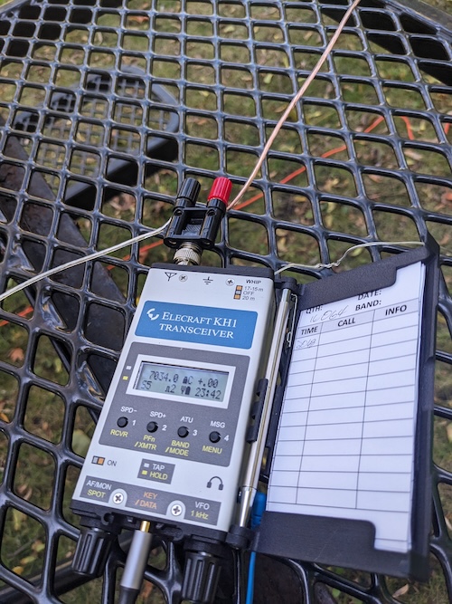 I got the idea from Thomas Witherspoon, K4SWL. He used the same setup in his article, Elecraft KH1 + Speaker Wire = Pileup Madness on Bakers Mountain!.