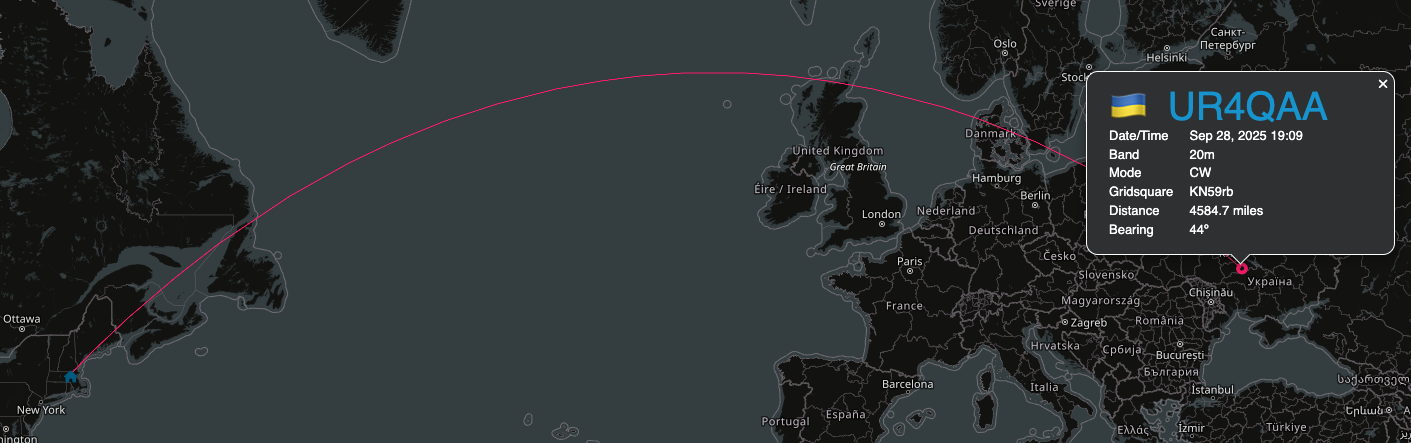 Here’s the Ukraine contact I made. Michelle set up a great station. Her 20 meter dipole antenna was working very well that day.